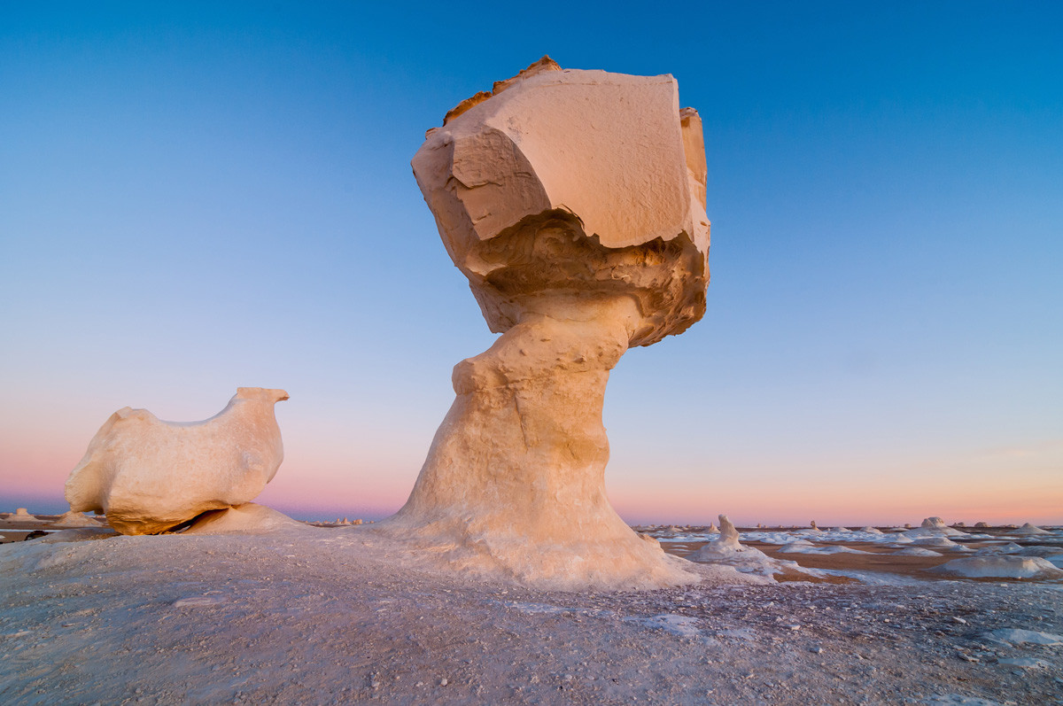Reisende, die es weiter westlich zieht, treffen auf die Weisse Wüste. Kalksteinformationen, durch Wind und Zeit geprägt, ragen in unterschiedlichen Varianten aus dem sandigen Boden. Die Landschaft wirkt surreal, fast ausserirdisch. Ein Wüstencamp ermöglicht einfache, aber eindrucksvolle Übernachtungen. Sternenklarer Himmel, absolute Stille und das Gefühl unendlicher Weite schaffen Momente, die lange nachwirken.