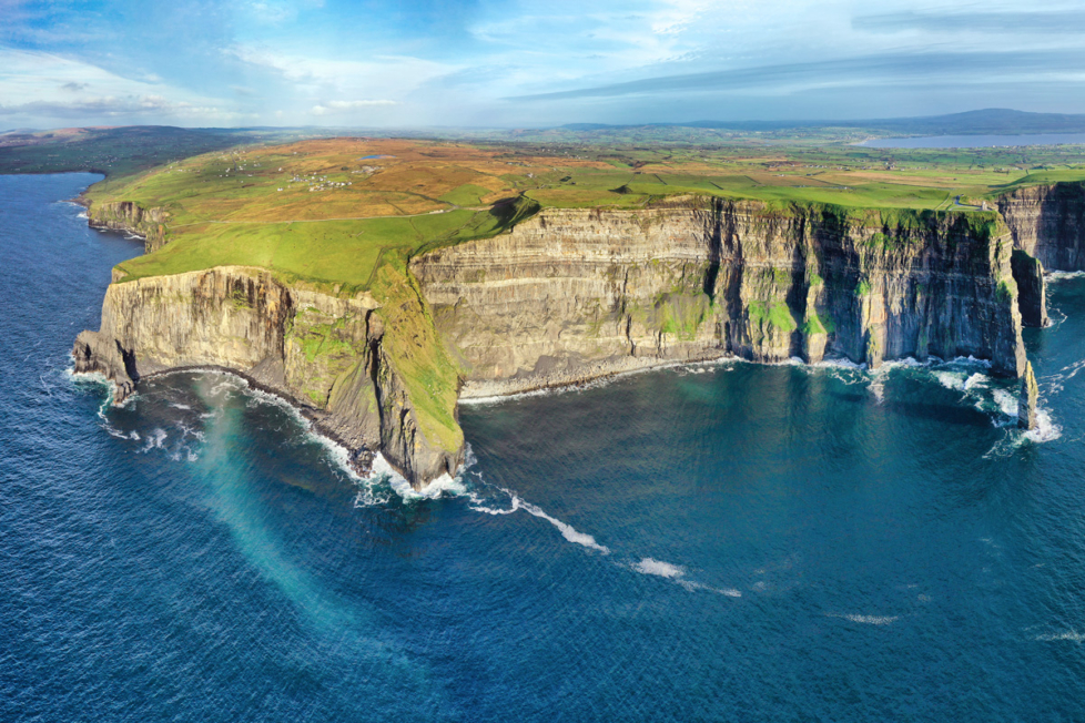 Im Süden kann es gemächlich beginnen. Vom Postkartenort Kinsale aus geht es erst über die Halbinseln Beara und Dingle hinauf durch das County Kerry. Bald hält das County Clare dann eine der meistfotografierten Sehenswürdigkeiten Irlands bereit: die Cliffs of Moher. An einem klaren Tag stehen hier zahlreiche Menschen und schauen gebannt auf das Meer. Doch wer früh kommt, wenn der Morgennebel noch über den Felskanten hängt, erlebt die 214 Meter hohen Steilwände ganz anders. Die nahe gelegene Karstlandschaft des Burren ist das genaue Gegenteil: eine beinahe mondhafte Ebene aus silbergrauem Kalkstein, in deren Rissen im Frühling wilde Orchideen blühen.